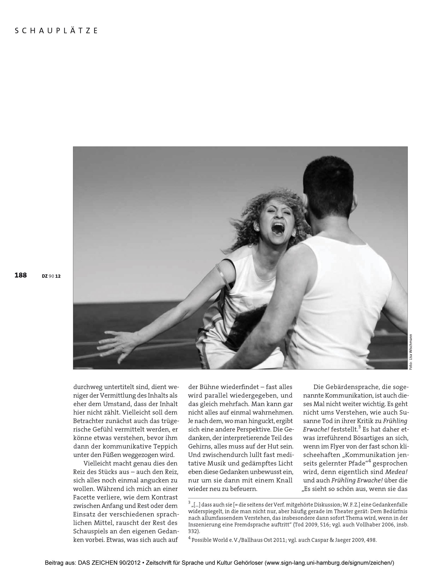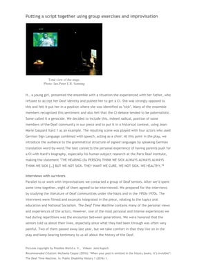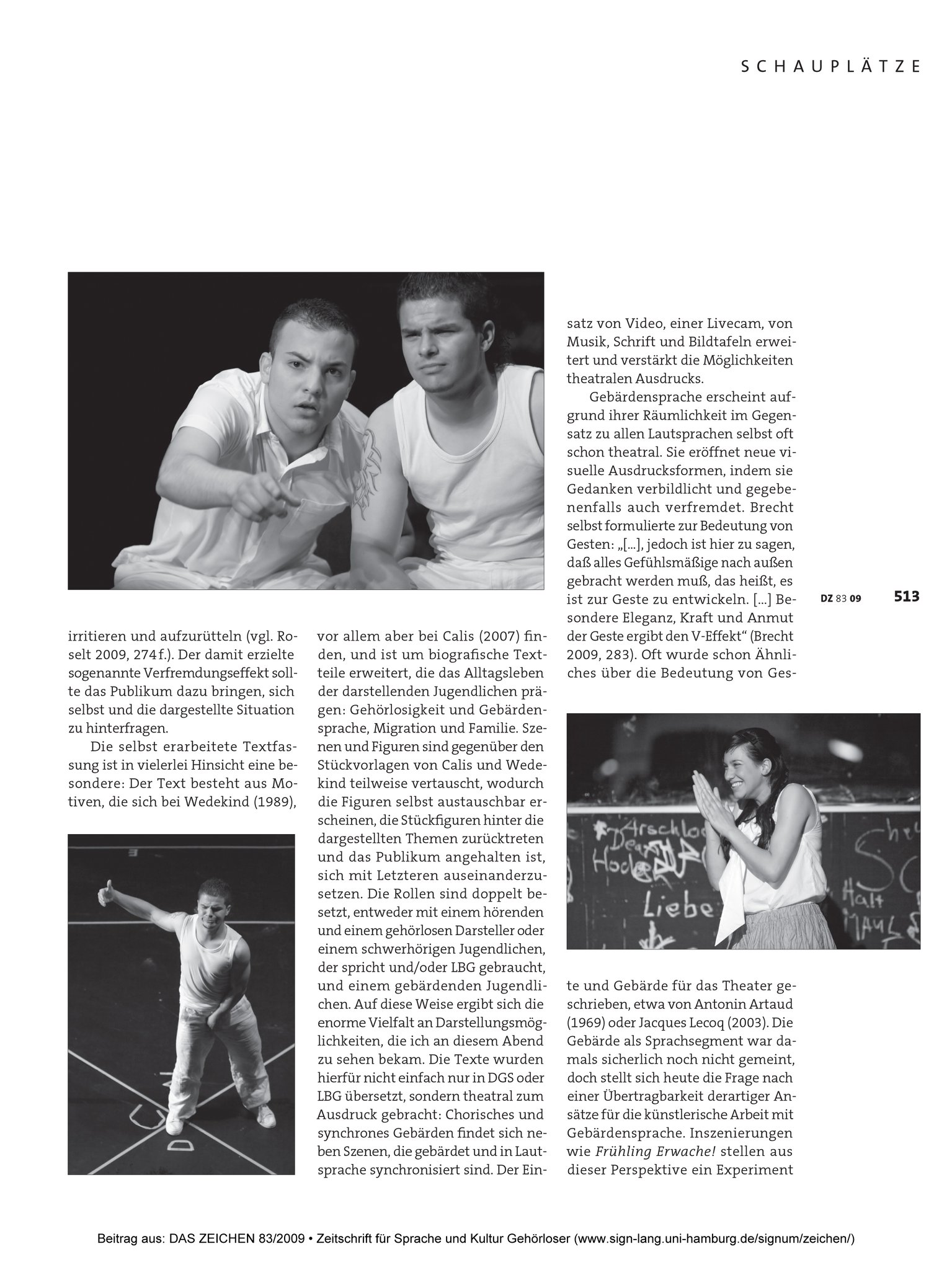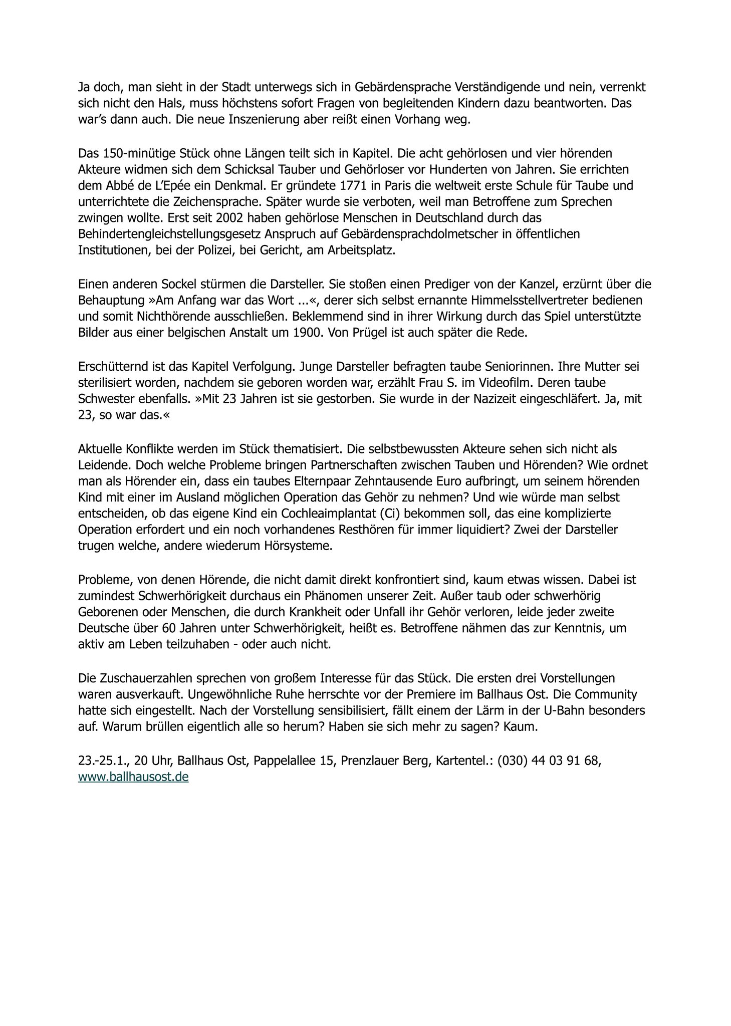 dazu: „Die Entpolitisierung des Theaters. Rafael Ugarte Chacóns Untersuchung eines Theaters von und für Gehörlose und Hörende