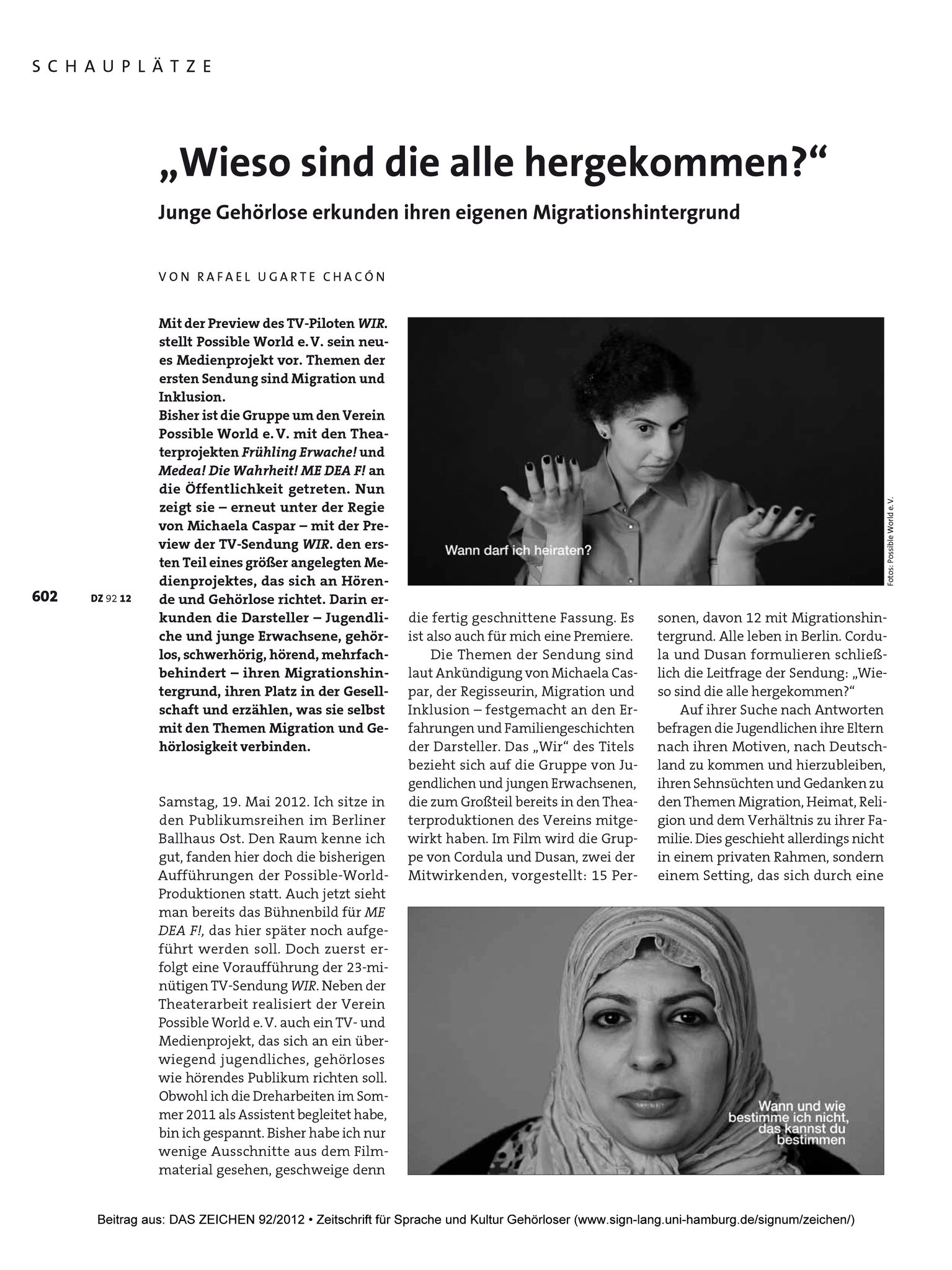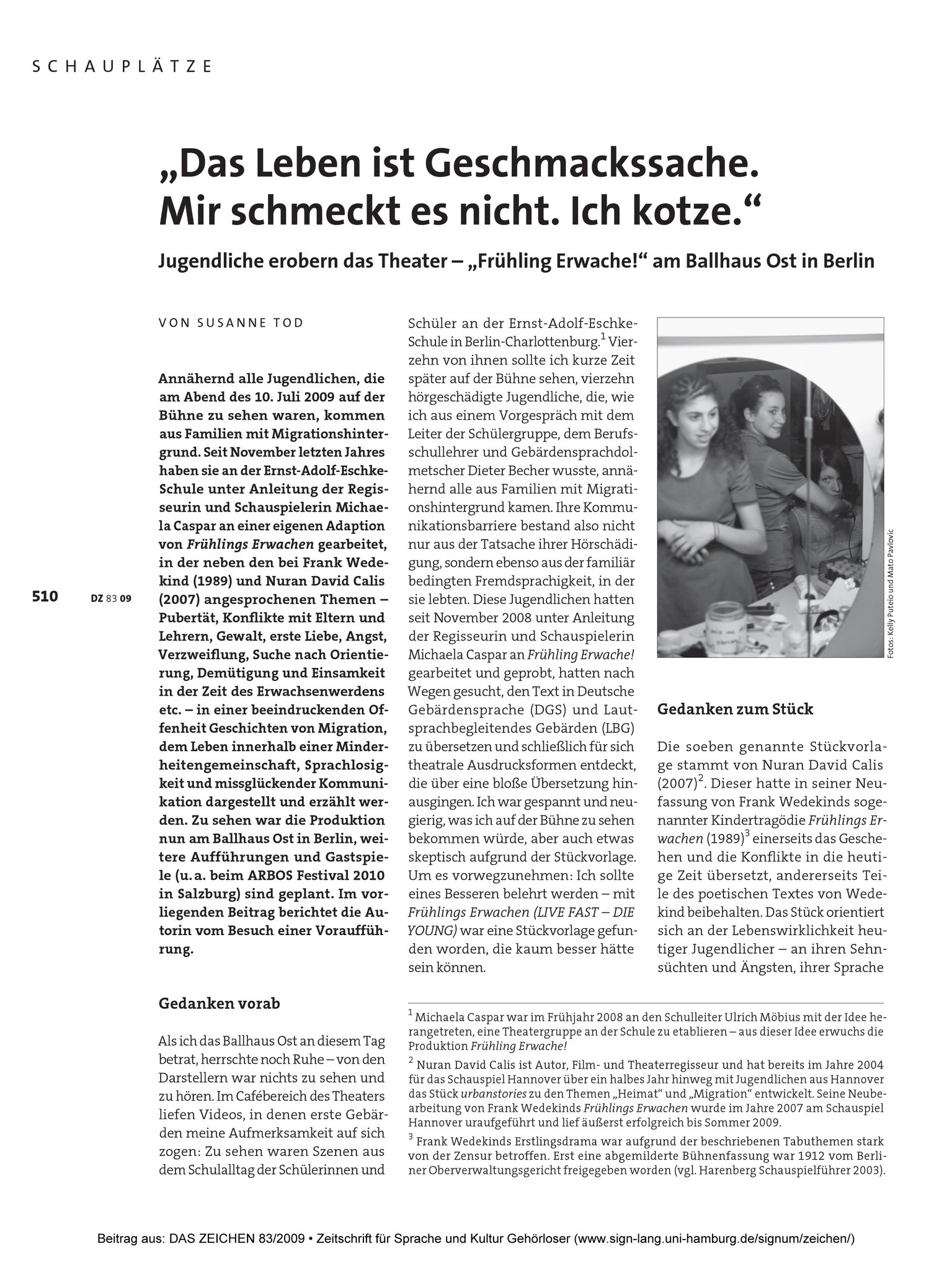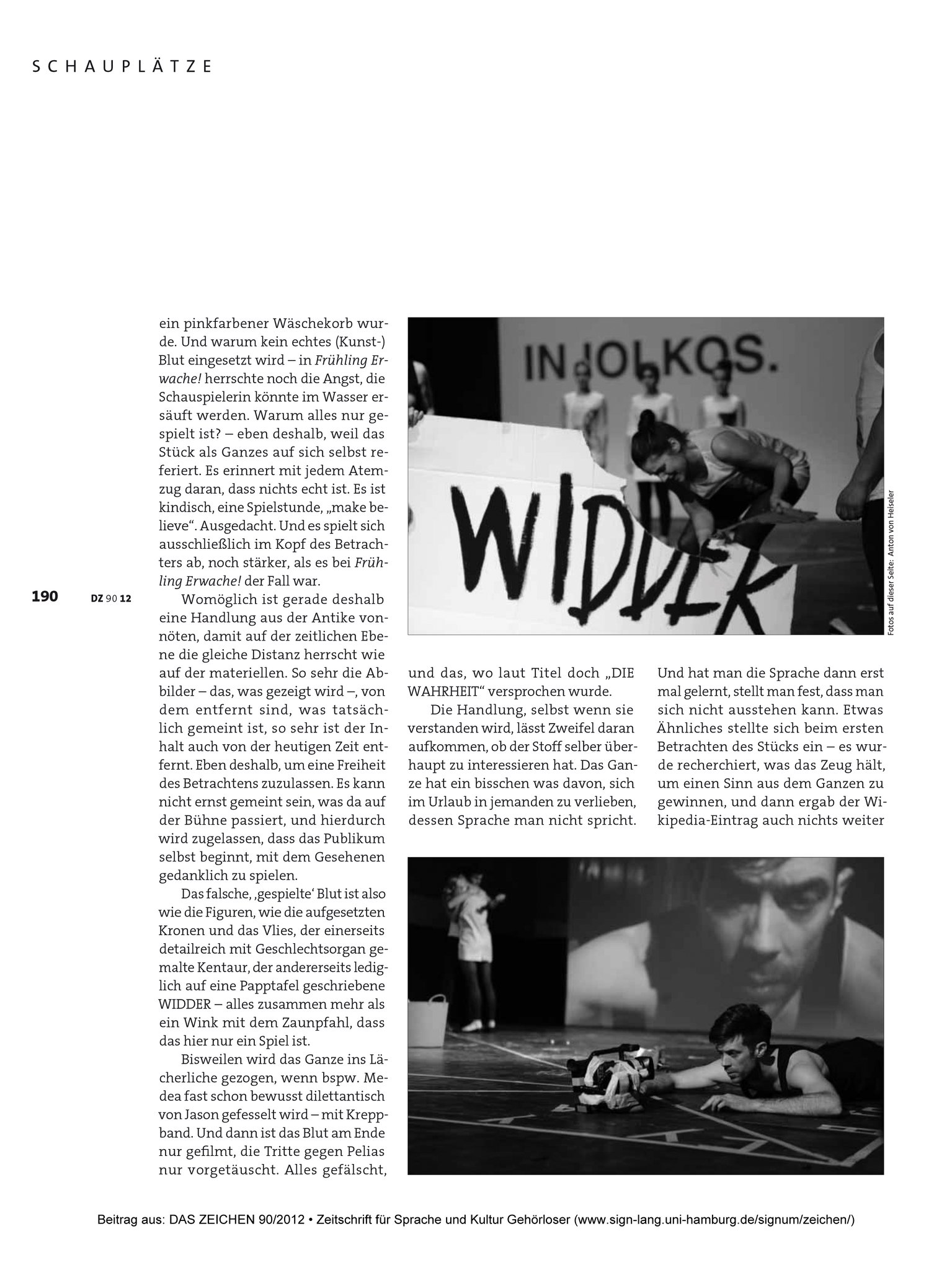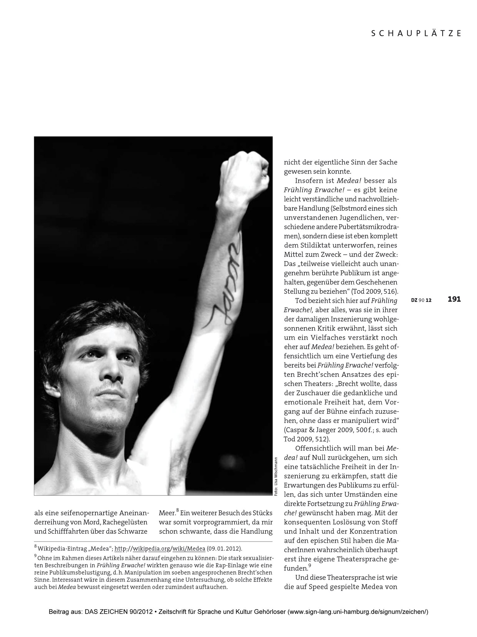 dazu: „Die Entpolitisierung des Theaters. Rafael Ugarte Chacóns Untersuchung eines Theaters von und für Gehörlose und Hörende