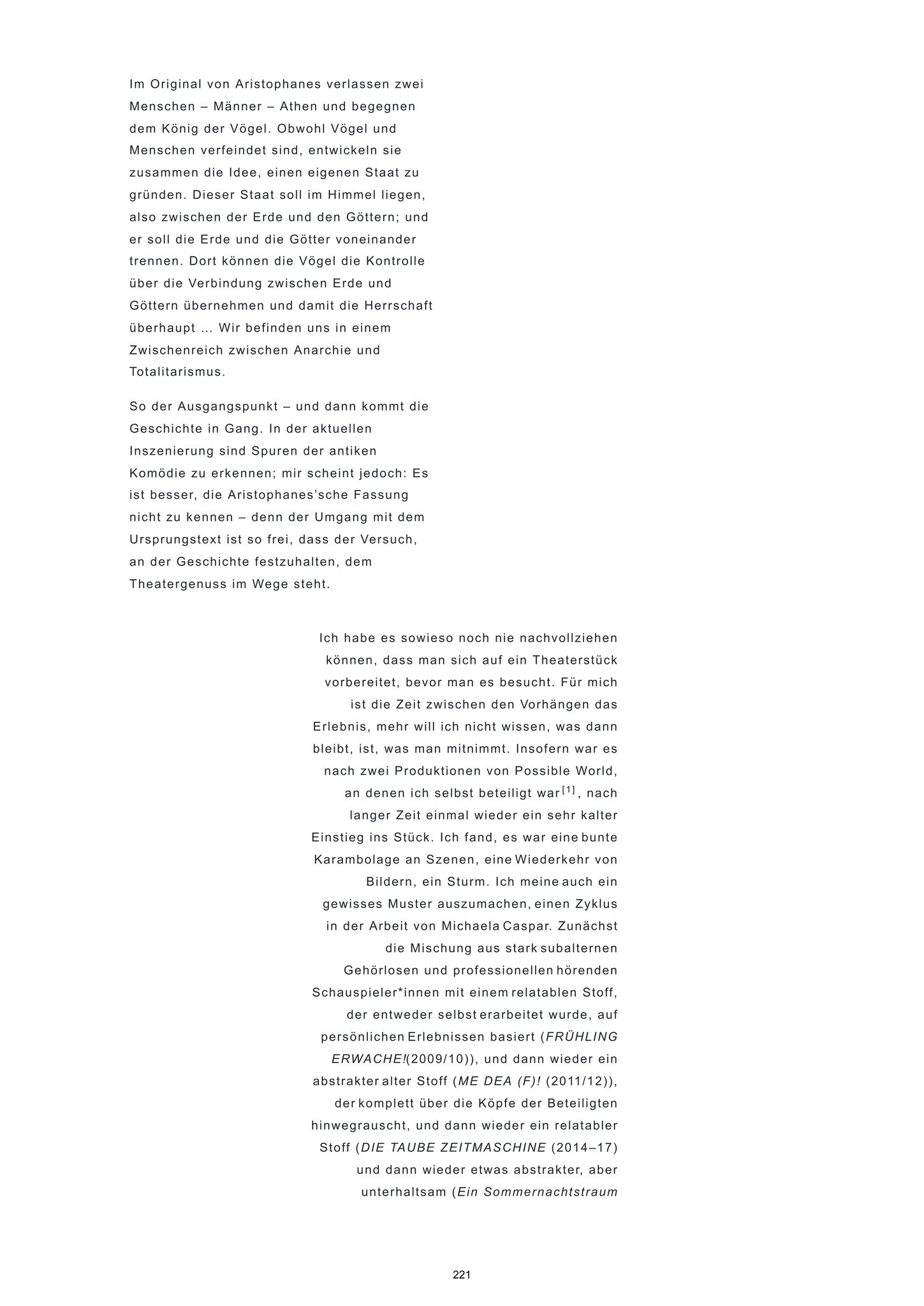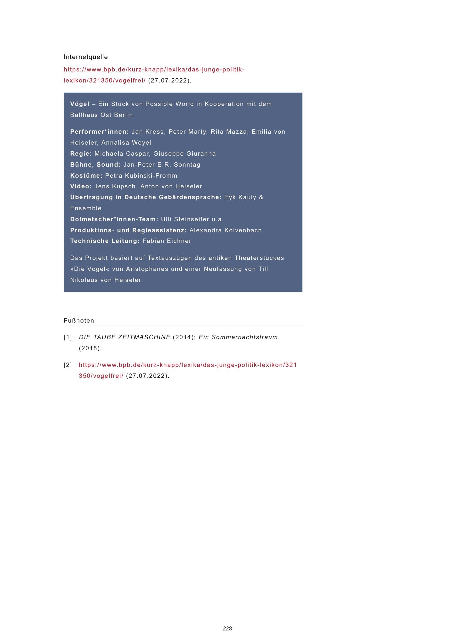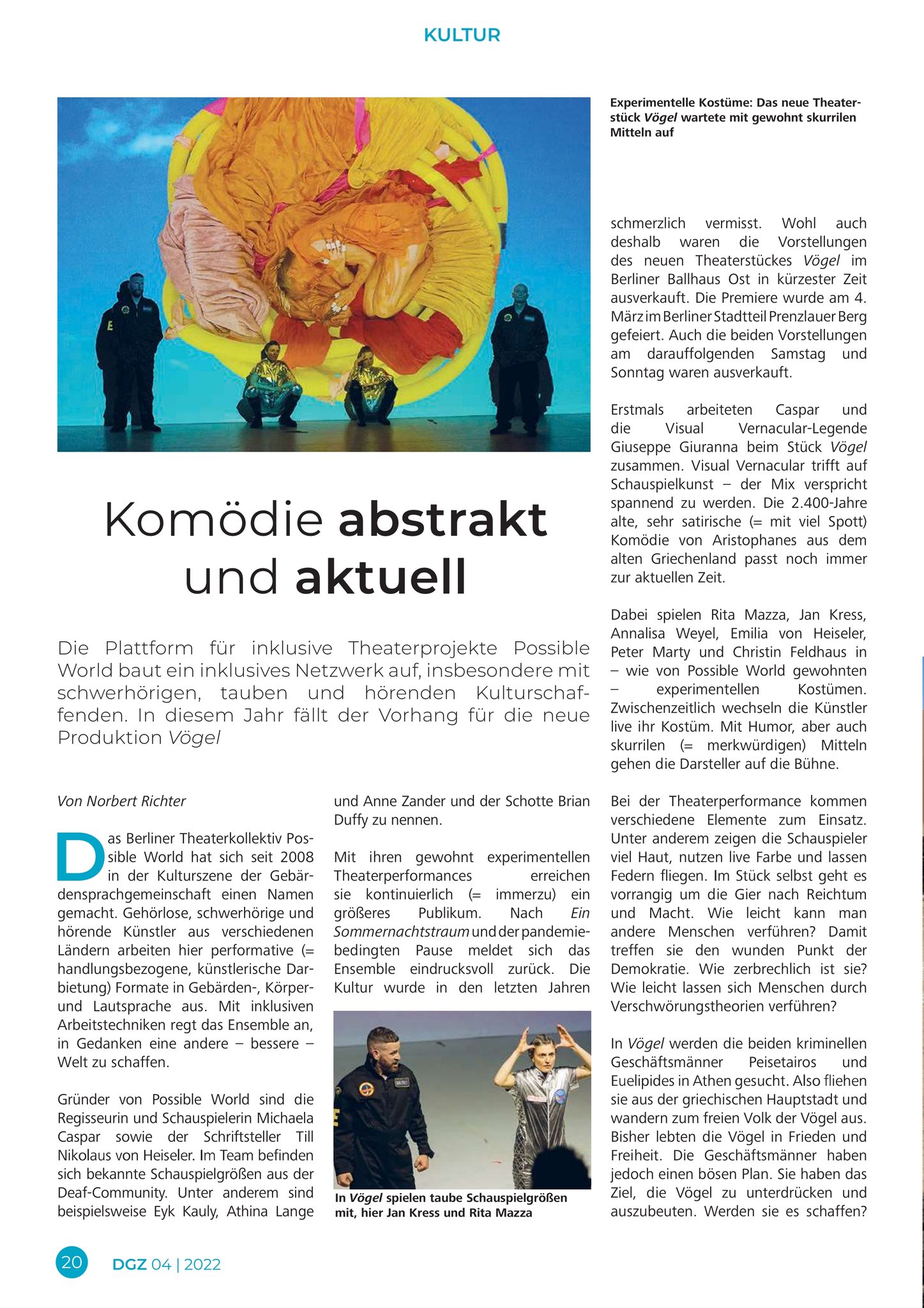 Das Zeichen: „Vögel - Das neue Theaterstück von Possible World am Ballhaus Ost Berlin" Gedankendialog von Wille Felix Zante und Sophia Barthelemes, DZ 119, 2022